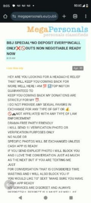 HEY I'M RUNNING A LIMITED TIME SPECIAL THE SPECIAL WILL NOT LAST LONG SO YOU BETTER HURRY BBJ SPECIAL LOWEST AROUND MUST TEXT FOR DETAILS PLEASE NO TIME WASTING IF YOU JUST WANT TO TALK ON THE PHONE I AM NOT YOUR GIRL DO NOT CONTACT UNLESS YOU ARE READY MY MY TIME IS PRECIOUS TO ME AS YOURS IS TO YOU IF YOU WASTE MY TIME I WILL BLOCK YOU AND REPORT YOU ABSOLUTELY NO OUTCALLS AND NON-NEGOTIABLE NO DRAMA ALL PICTURES ARE RECENT